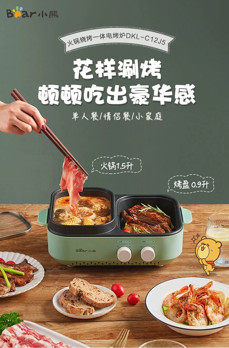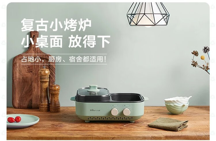 小熊涮烤一体锅烤肉盘家用多功能电烤盘涮烤电烤炉 绿色 DKL-C12J5