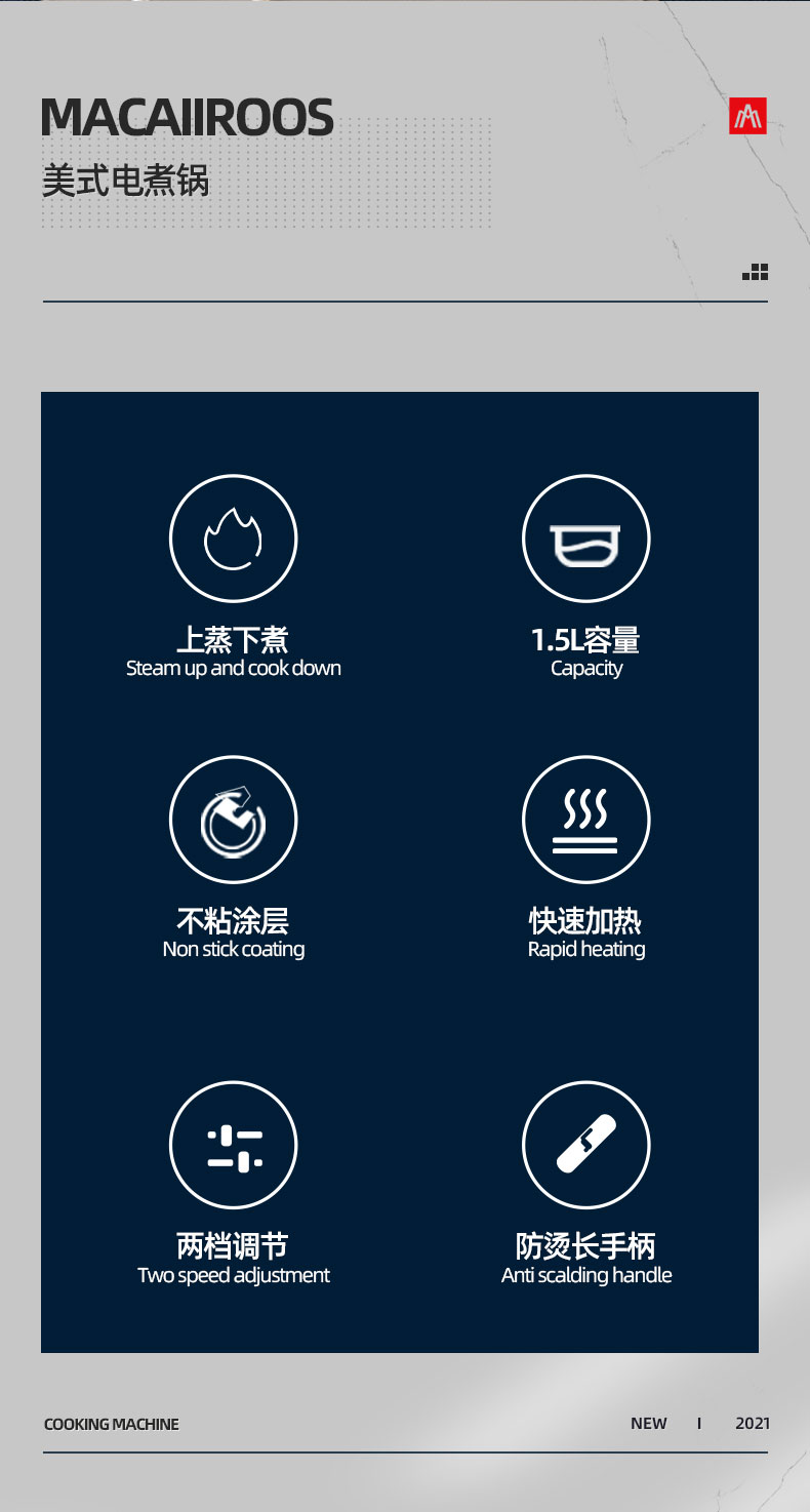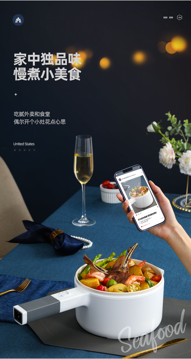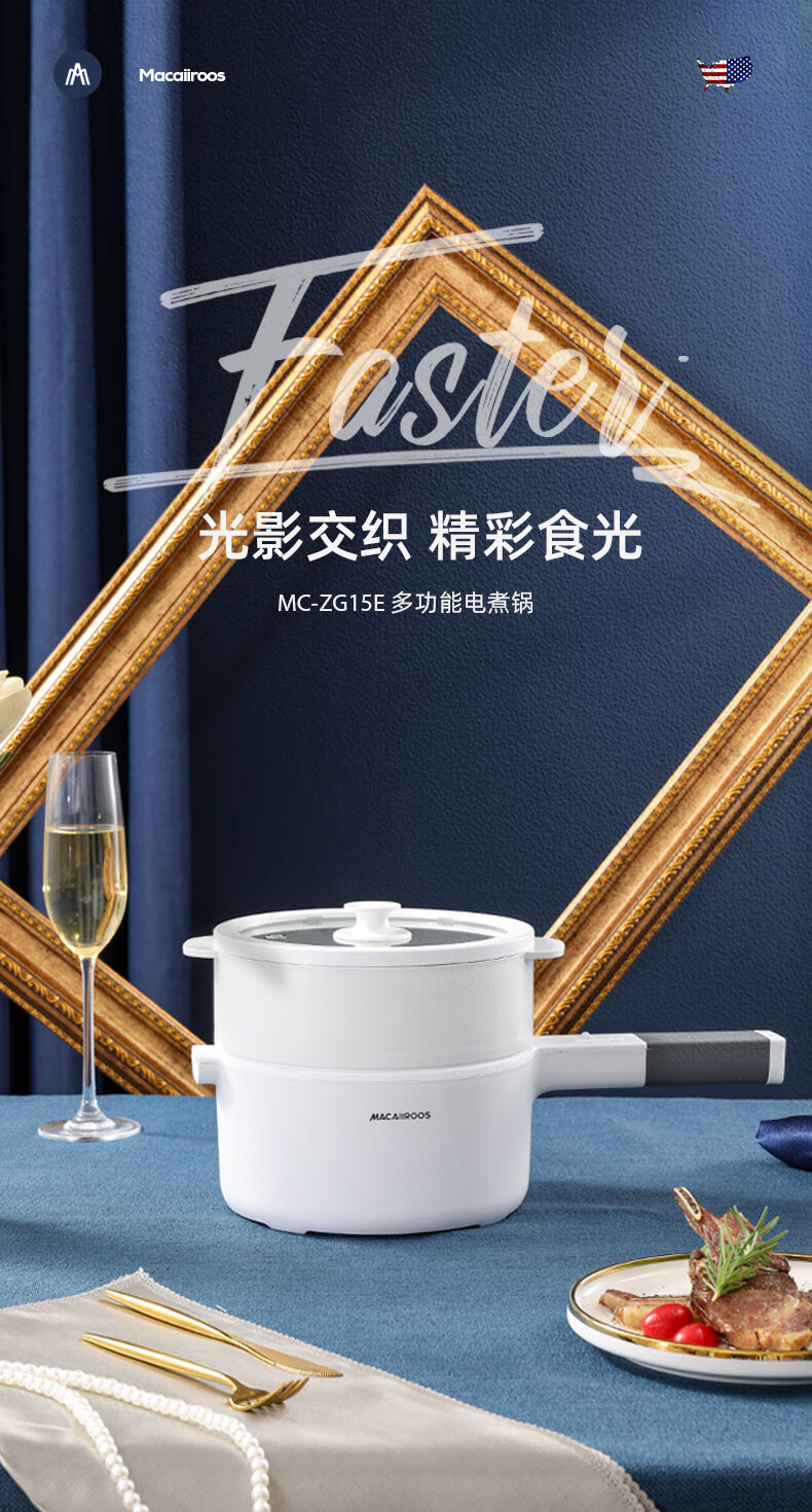 迈卡罗 (MACAIIROOS)多功能电火锅电蒸锅电煮锅宿舍学生锅电锅火锅煮面家用