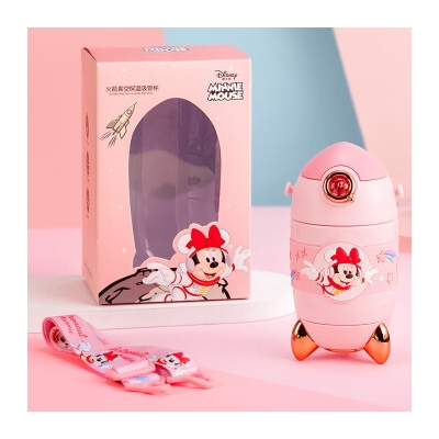 迪士尼儿童水杯 宝宝便携火箭真空保温吸管杯 米妮300ML