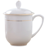 茶杯 陶瓷盖杯中号骨瓷水杯金边会议杯办公杯酒店商务喝茶开会杯子360ml